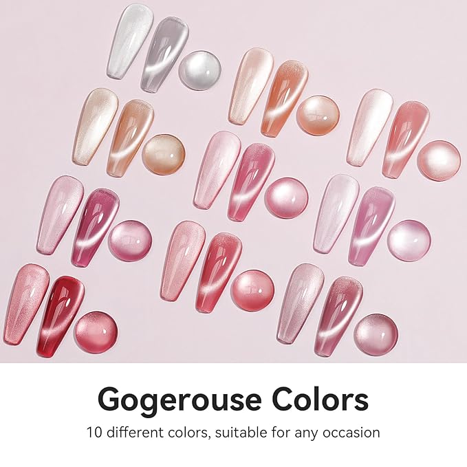 Cateye Gel Polish Set With Magnet, Pink Purple Red 10 Colors Jelly Magnetic Nail Polish Moonlight, Holographic Glass Shimmer Glitter Soak Off UV Gel Salon DIY At Home, 8ml