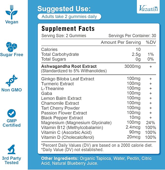 - Vazatisi Trusted by Millions: Our ashwagandha gummies are produced, tested, and bottled in a facility to ensure quality and potency. If you have any questions, please email our US-based "online" support team, and we will assist you attentively