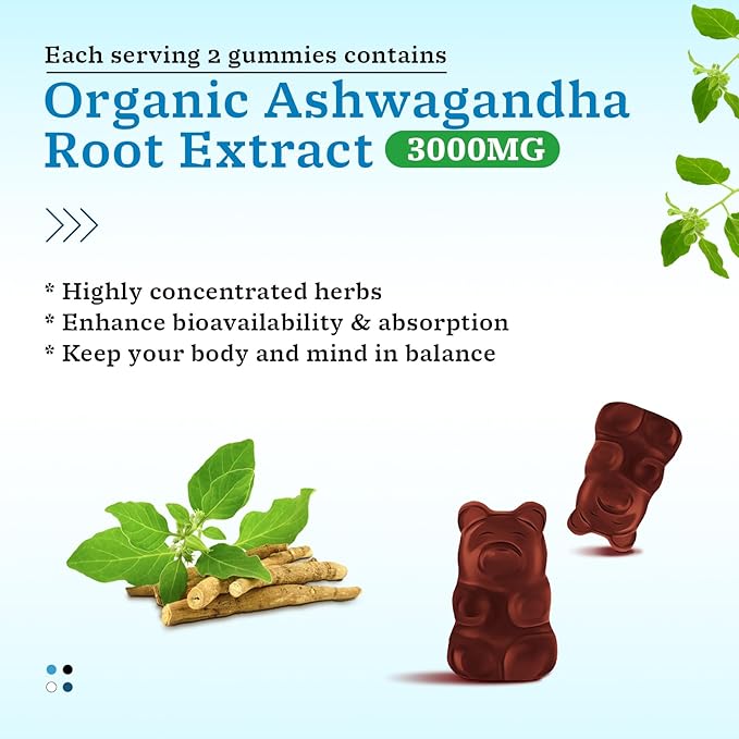 - Yummy Blueberry Flavor: The ashwagandha gummies are easy to digested and absorbed the nutrients by your body. Blueberry flavor making the ashwagandha gummy an enjoyable part of your daily routine of health. Take and Glow on the go