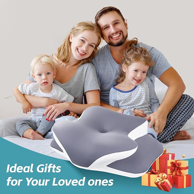 - 【Butterfly Design for Instant Neck Pain Relief 】 - Our ergonomic cervical pillow features butterfly contour with a hollow center and massage nodes, which perfectly cradles your head, maintains the natural neck curve, and aligns the spine to relieve pressure points instantly. This pillow offers two height options to suit different sleeping positions, allowing side, back, and stomach sleepers to find their ideal fit. It also features armrest grooves to relieve arm pressure and enhance circulation, ensuring a comfortable night's rest.