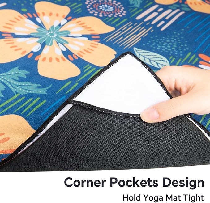 - Corner Pockets & Silicon Spotted Backside: Features 4 corner pockets on the backside, the non slip yoga mat towel helps secure and hold onto the mat firmly. This grip bottom design allows you to focus your mind, body and breath on the yoga practice, without worrying about bunching.