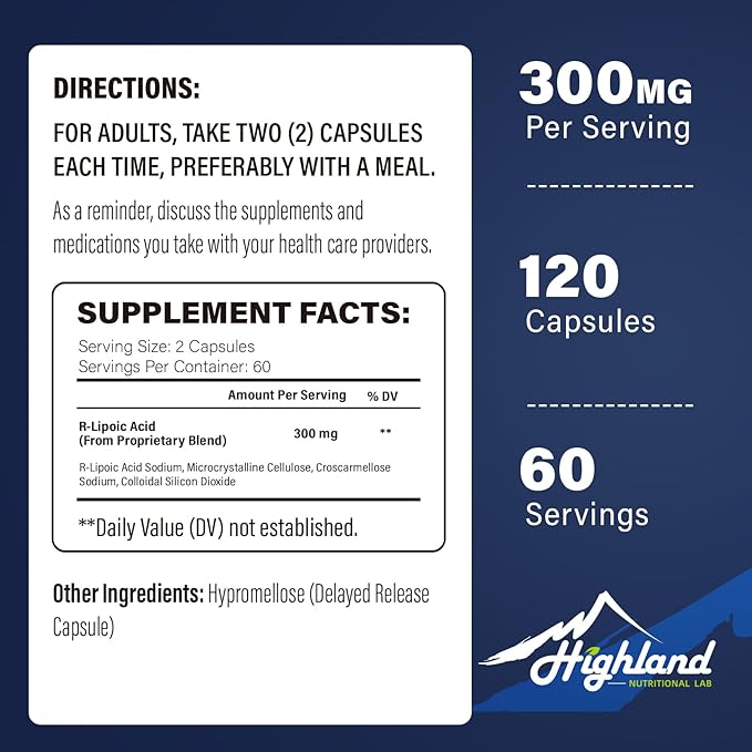 - [Healthy Metabolism Support] R-lipoic acid supplements are formulated to support healthy metabolic function, brain, and nerve health