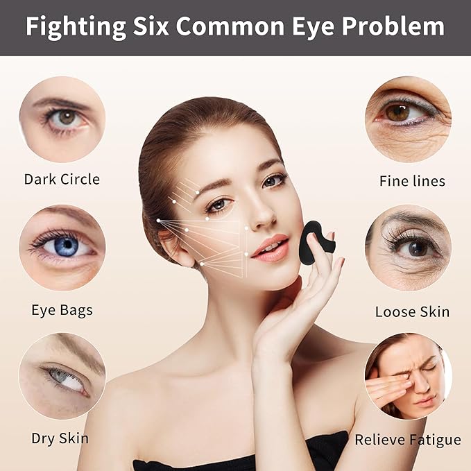 - 【Quiet & Eye Massage Tool】Eye massager can reduce the dark circles and puffiness under the eyes caused by late night or insomnia, improve the sagging skin and fine lines under the eyes, help restore the delicate skin under the eyes, relieve eye fatigue at work, solve a variety of eye problems, eye care tools with 6000 ~ 8000 vibrations / minute, so that your facial skin to keep in motion. Ultra-quiet design allows you to use at home or in the office at any time.