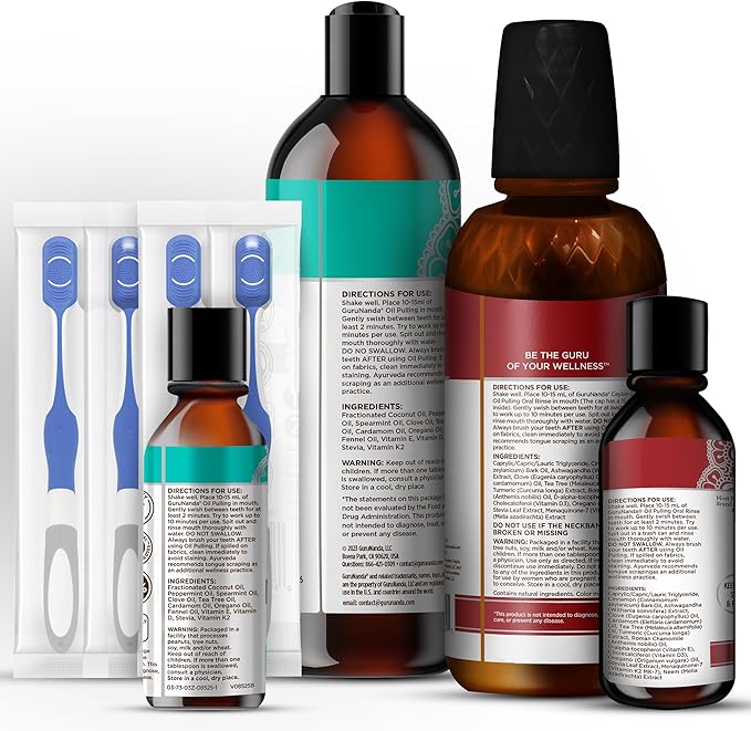 - MEET THE HAPPY GUMS DUO!: Embrace a holistic approach to oral hygiene with the Ultimate Happy Gums Duo, featuring GuruNanda's Cocomint Oil Pulling and Ashwagandha Oil Pulling. Together, they promote gum health, freshen breath, and support optimal oral hygiene.