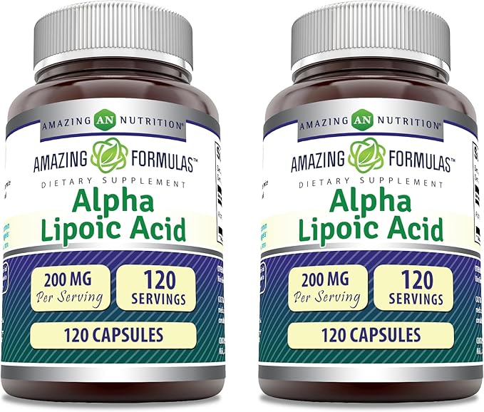 Amazing Formulas Alpha Lipoic Acid | 200 Mg Supplement | 120 Capsules | Non-GMO | Gluten-Free | Made in USA (2 Pack)