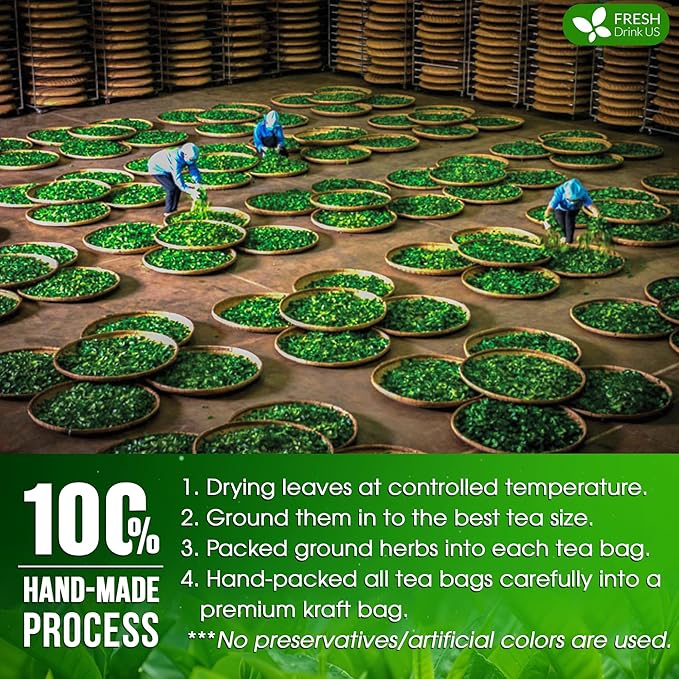 - ☘️ TULSI PEPPERMINT TEA BAGS MADE BY A HAND-MADE PROCESS: Tulsi Leaves and Peppermint are picked at their flavorful/colorful peak and naturally sun-dried and roasted to perfection. We hand-select only the premium herbs for the utmost quality. Then we grind them into the best tea size. Next, we immediately pack it in eco-friendly tea bags. Lastly, we pack the tea bags into food-grade kraft bags for ultimate freshness.