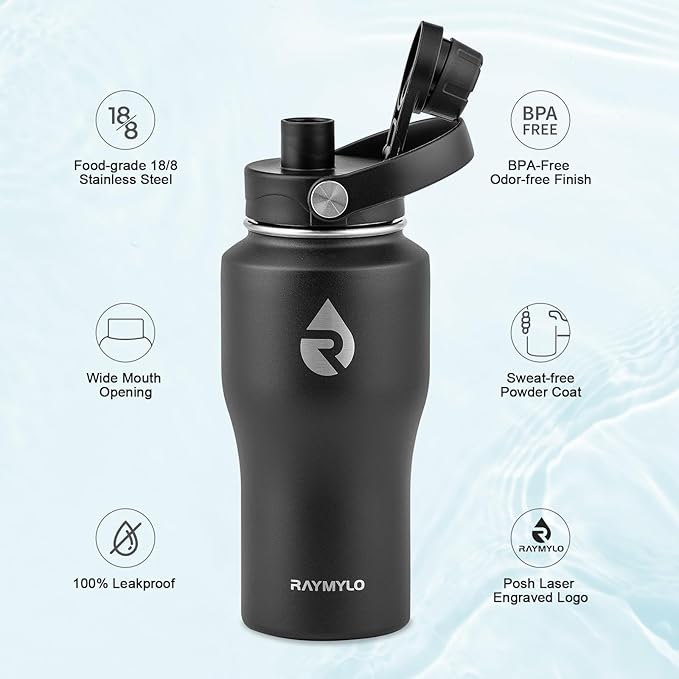 - 100% Satisfaction Support: We offer Continuous After-sales Service and 100% customer satisfaction against any leakage or insulation failure. Package contains 1 x RAYMYLO Travel Water Bottle , 1 x Straw Lid with 2 x Straws & 1 x Straw Brush, 1 x Spout Lid.