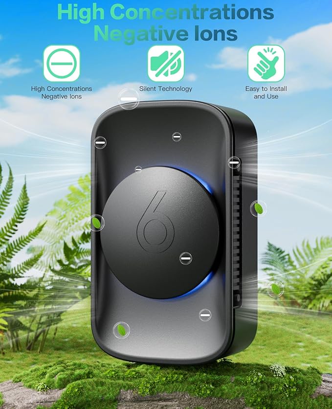 - 【Sustainable and Energy Efficient】--No chemicals, no need to change filters frequently, and no need to worry about using this plug in air freshener only in unoccupied spaces. Simply plug this air ionizers for home in to enjoy a continuous supply of fresh air around the clock, using as little as 1 Wh of power!