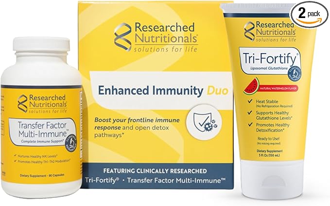 Researched Nutritionals Liposomal Glutathione (450mg) + Colostrum & Mushrooms Supplement for Immunity - Enhanced Immunity Duo - Tri-Fortify Watermelon + Transfer Factor Multi-Immune (2 Piece Set)