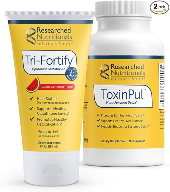 Researched Nutritionals Revitalized Detox Duo - for Immune Support, Liver Health or A Full Body Detox Cleanse - Tri-Fortify Watermelon Liposomal Glutathione (450mg) Liquid & ToxinPul (2 Piece Set)