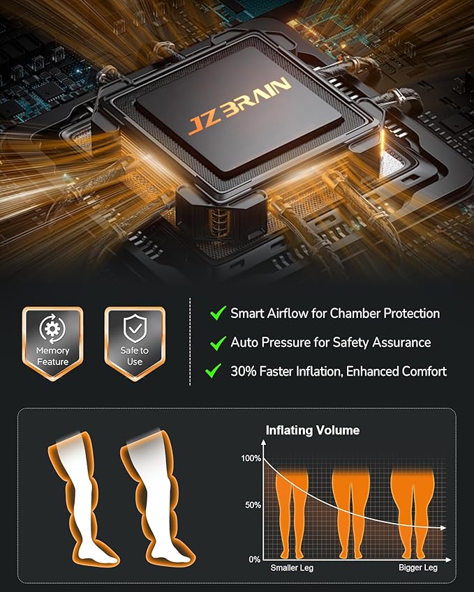 - 【Fast Inflation & Consistent Compression】The high-performance pump delivers 30% faster inflation compared to standard models, achieving stable compression levels for reliable relief. Its powerful air compression technology ensures maximum comfort at higher pressure settings, perfect for post-workout recovery.