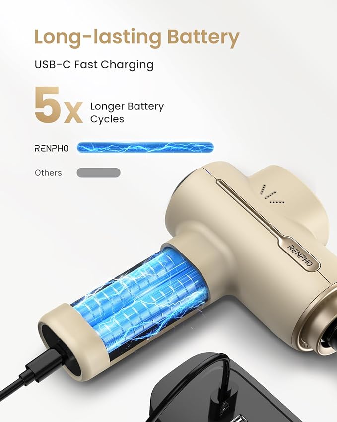 - Convenient USB-Type C Charging: No need to worry about charging when traveling, this rechargeable massager gun can be charged using a 5V/2A adapter (not included) or a power bank. Ensure to fully charge the massager before its initial use