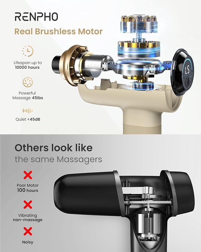 RENPHO Massage Gun Deep Tissue, Portable Percussion Massager for Back and Neck, Gifts for Men and Women, Handheld Device with Carry Case, Active Tan