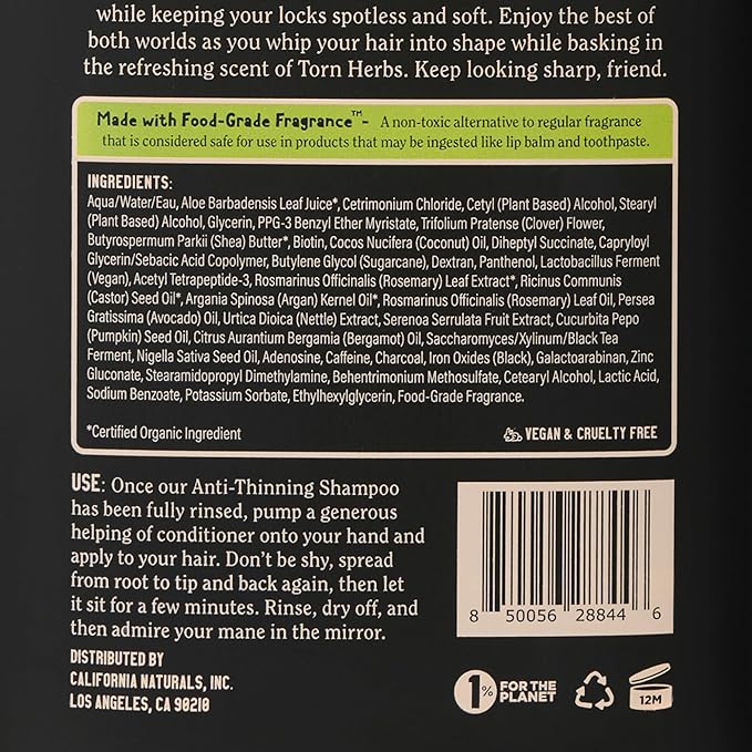 California Naturals Mens Re:GRO Conditioner for Hair Growth Support, Scalp Hair Care with Biotin, All Hair Types, Vegan, Natural, Cruelty Free, Silicone, Paraben & Sulfate Free, for Men, 16.5 oz