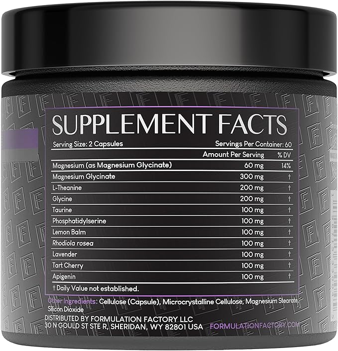 - MELATONIN-FREE FORMULA – Powered by Magnesium Glycinate, L-Theanine, Glycine, Taurine, Phosphatidylserine, Lemon Balm, Rhodiola Rosea, Lavender, Tart Cherry, Apigenin, and more. Designed to calm the mind without grogginess.