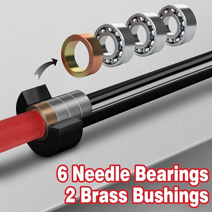 • Excellent Bearing Rotation System: Featuring high-quality bearing rotation system, this barbell delivers exceptional rotation for fluid and stable lifts. The low-friction design minimizes wrist stress and enhances movement efficiency, making it perfect for explosive and dynamic exercises.