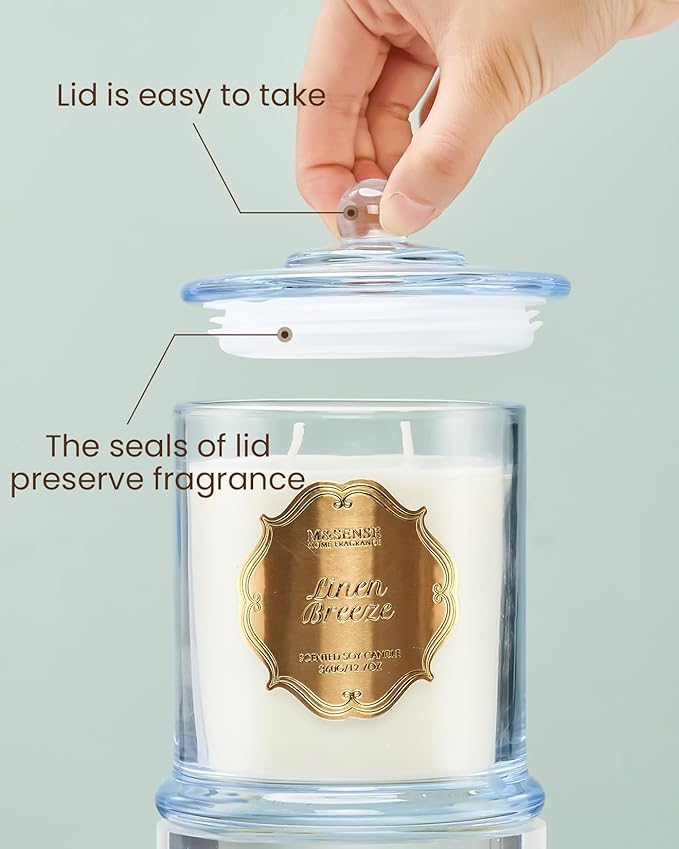 M&SENSE Linen Candles for Home Scented, Organic Soy Candles Non Toxic, 12.7oz Large Jar Candle 75 Hours Long Lasting Slow Burning, Fresh Clean Scented Air Puriffying Housewarming Candle Father Gift