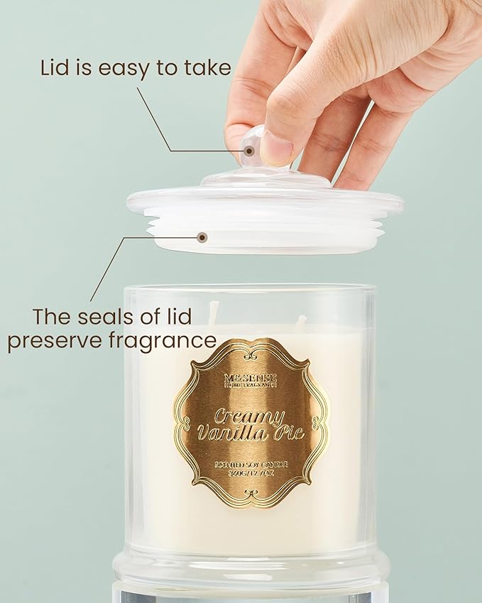 M&SENSE Vanilla Candles for Home Scented, Organic Soy Candles Non Toxic Soot-Free, 12.7oz Large Jar Candle 75 Hours Long Lasting Slow Burning, Strong Scented Housewarming Candle Gift