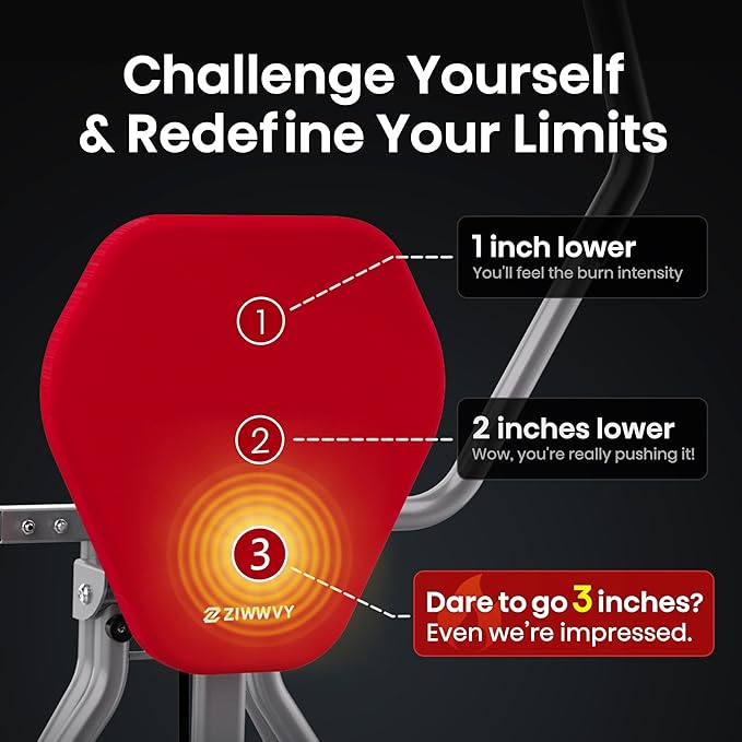 - Inspired by Gym-Level Leg Raises with a Twist: Our AB SWING brings the intensity of gym leg raises to your home, enhanced with a comfortable padded seat. Simply shift your body weight to perform basic core exercises. Want to amp it up? Sit 1 inch lower, and you’ll feel the burn intensify. Go 2 inches lower—wow, you’re really pushing it! Dare to go 3 inches? Even we’re impressed. Challenge yourself and redefine your limits!