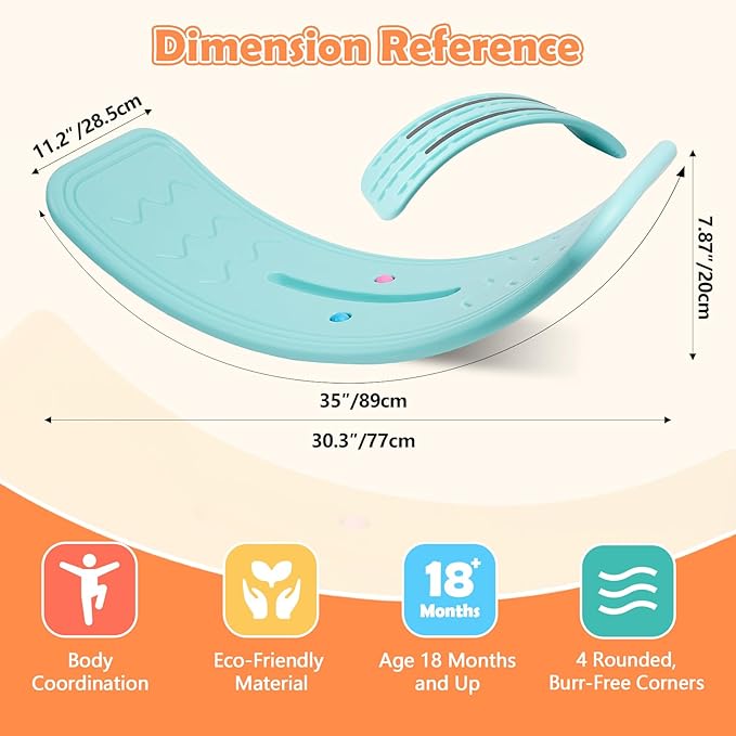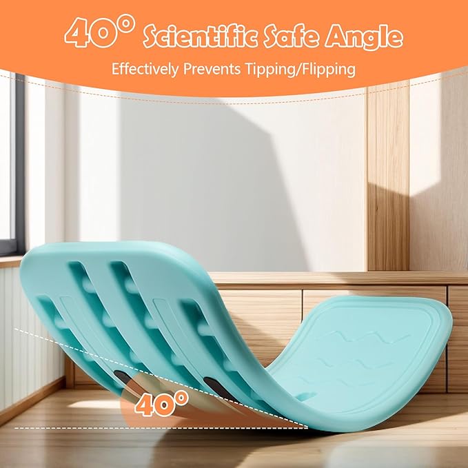 - Safety and Anti-Slip: The edges and corners of the balance board are smooth and not sharp, with no burrs on the surface; The included anti-slip strips and the textured surface of the balance board increase friction, reducing the risk of slipping and effectively ensuring the safety of young children; The scientifically designed base curve of approximately 0-40° helps prevent children from tipping over or falling while playing