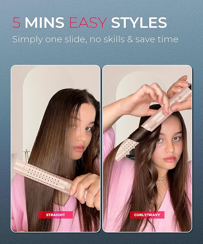 - 【3-In-1 for Limitless Styling】 Why stick to one look when you can have it all? This versatile wand hair curling iron lets you effortlessly create beach waves, bouncy curls, or sleek, straight strands. Enjoy endless styling possibilities for any outfit and occasion—without the clutter of multiple tools!