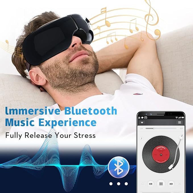 Eye Massager with Heat and Music,Eye Massager for Migraines,Sleep Eye Mask for Reduce Eye Strain,Ideal Christmas Gifts for Women/Men