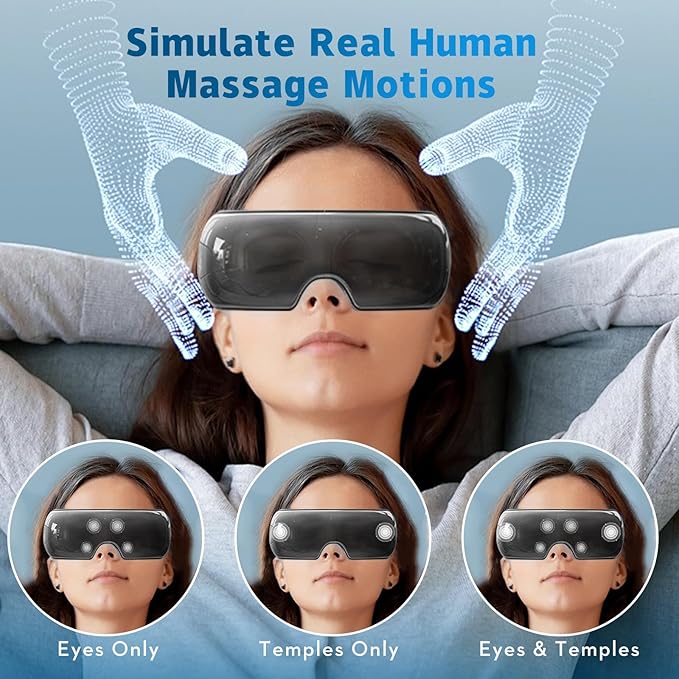 - Eye massager for Migraines:Built-in 8 massage areas, comprehensive coverage of acupuncture points around the eyes, simulating fingertip kneading pressure.With heat and music features, this gadget is sure to help them get an energizing break.