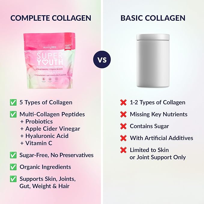- Meet Super Youth - Collagen, prebiotics & probiotics, apple cider vinegar, organic baobab, and 5g of protein help reduce wrinkles, support fitness, strengthen joints, and improve digestion—naturally flavored and sugar-free.