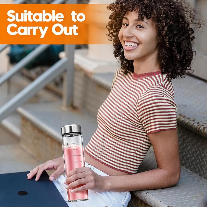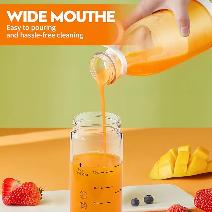 - Wide Mouth: Featuring wide mouths with convenient measurement markings, our glass juice bottles are designed for user-friendliness. The wide-mouth design simplifies cleaning—these bottles are also dishwasher safe. Available in 12oz, 16oz, and 20oz sizes, each bottle is crafted from high-quality borosilicate glass and comes equipped with stainless steel lids that provide a leak-proof seal