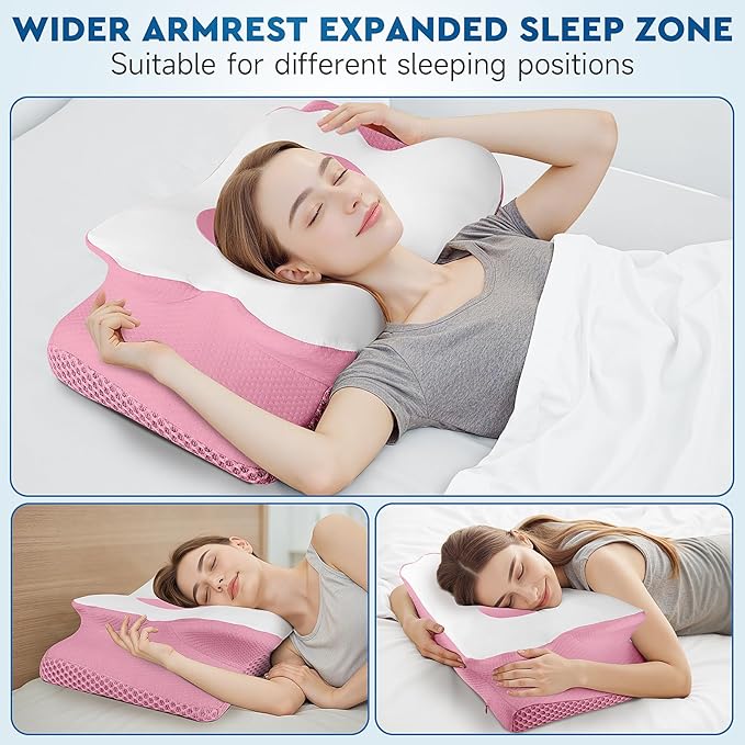 Cervical Neck Pillow, Memory Foam Neck Support Pillows for Sleeping, Shoulder Pillow for Side Sleepers, Back Stomach Sleepers, CertiPUR-US Certified, Queen Size, Pink