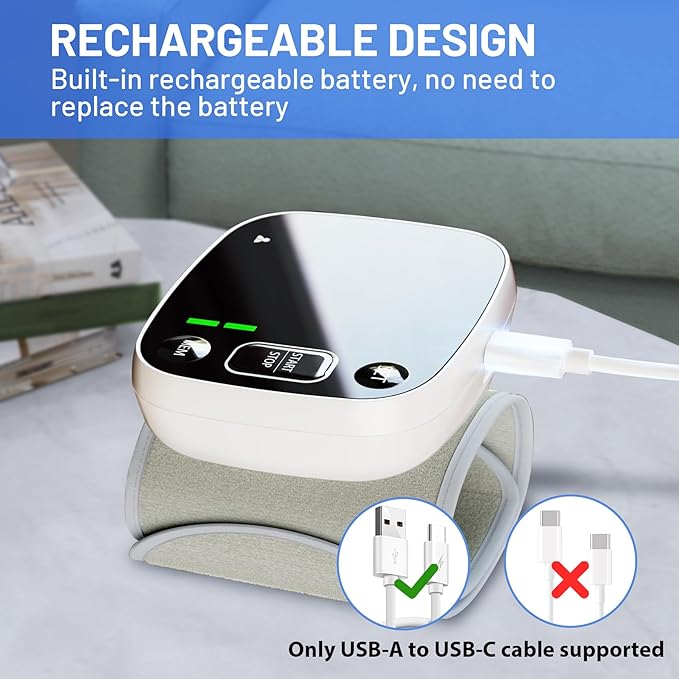 - WHAT YOU WILL GET: One * Wrist Blood Pressure Monitor, One * Usb Cable, One * Quick Guide, One * Carrying Box, and One * Instruction Manual; Note: Charging head is not included in the package