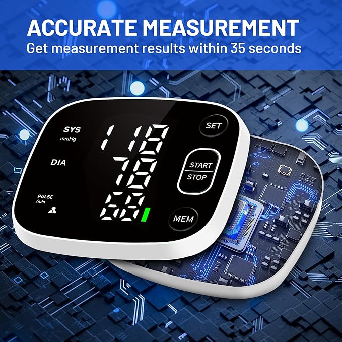 - PORTABLE AND RECHARGEABLE: This blood pressure machine comes with a carrying case that is lightweight and easy to carry; The built-in rechargeable battery allows you to get rid of the tedious battery replacement, simply connect the charger to recharge without worrying about running out of battery
