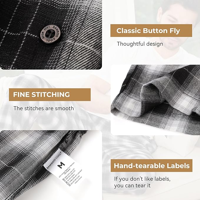 BAMBOO COOL Men's Pajama Bottoms Plaid Pajamas Pants for Men Soft Long Lounge Woven Pj Sleep Pant with Pockets