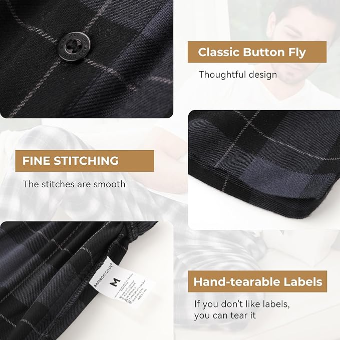 BAMBOO COOL Men's Pajama Bottoms Plaid Pajamas Pants for Men Soft Long Lounge Woven Pj Sleep Pant with Pockets