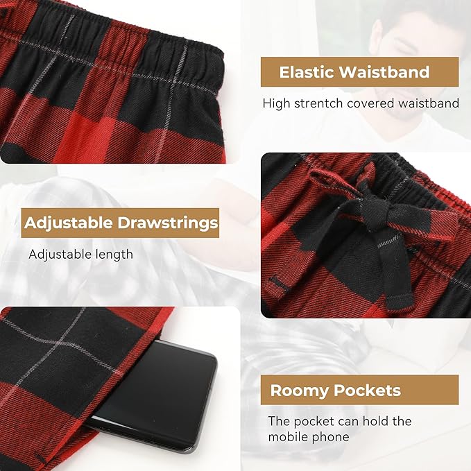 • Comfortable fabric: Men's plaid pajama bottoms is soft, breathable, durable and skin-friendly, perfect for sleeping or lounging.