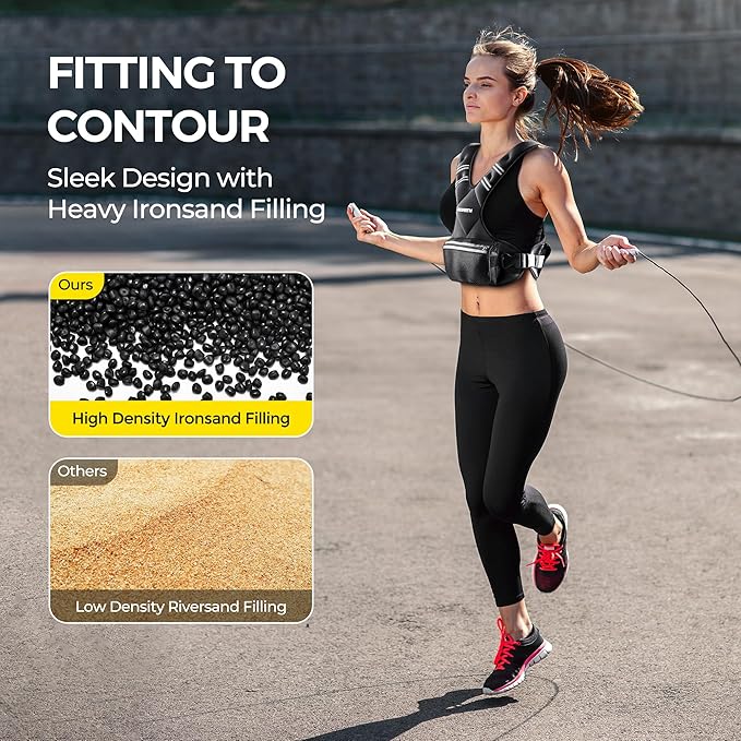 - DURABLE & COMFORTABLE: Crafted from soft, high-quality neoprene upper material, and filled with high-density iron sand, our adjustable weighted vest combines long-lasting durability with comfort. The materials are processed with active charcoals to remove the smell. Perfect for every exercise from yoga poses to kickboxing, light jogging to aerobatic cycling, this vest can handle it all.