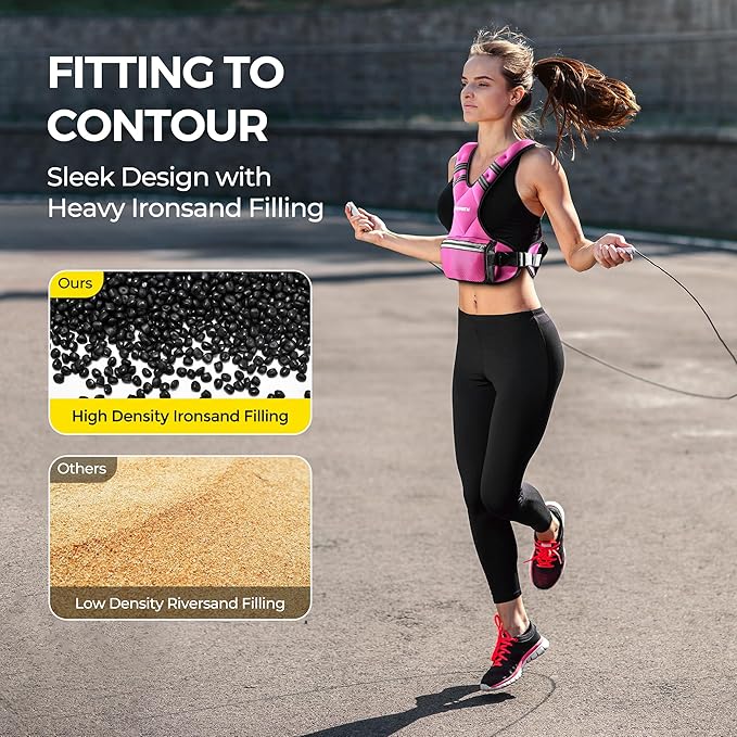 - DURABLE & COMFORTABLE: Crafted from soft, high-quality neoprene upper material, and filled with high-density iron sand, our adjustable weighted vest combines long-lasting durability with comfort. The materials are processed with active charcoals to remove the smell. Perfect for every exercise from yoga poses to kickboxing, light jogging to aerobatic cycling, this vest can handle it all.