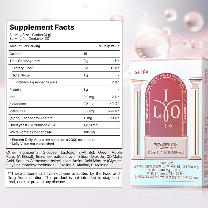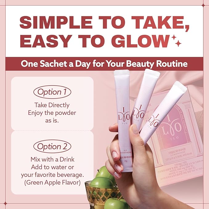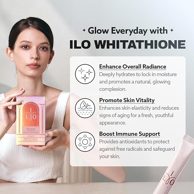 ILO Whitathione – Glutathione + White Tomato Antioxidant Powder with Vitamin C & E | Daily Glow Support | 30 Convenient Stick Packs
