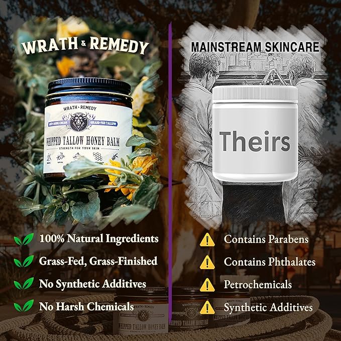- ๐ง SKINCARE, AS GRANDMA INTENDED: Experience the charm of traditional skincare with our whipped tallow honey balm. Like grandma's time-tested method, this balm uses rendered beef fat to deliver powerful moisturizing and soothing benefits. Our contemporary whipped balm offers a luxurious touch that honors the past