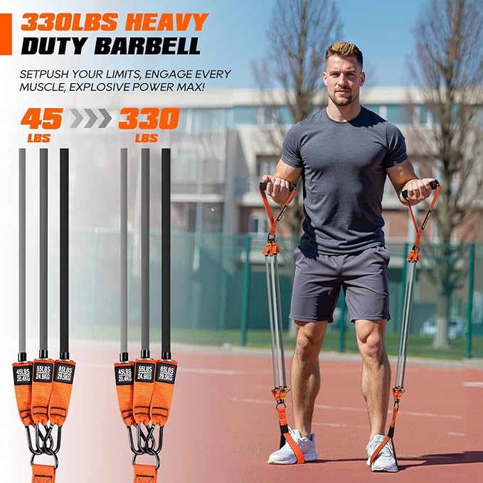 - 【Unleash Your Strength Potential】Our Pilates bar set is no ordinary fitness equipment. Boasting 6 exercise bands - 2 each of 35lb, 45lb, and 55lb tubes, it delivers a staggering 270LBS of combined resistance. Made from natural latex, these bands are not only highly elastic but also incredibly tear - resistant, ready to endure your most intense daily workouts. Whether you're a fitness novice or a seasoned pro, this set can be customized to match your strength level precisely.