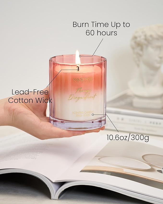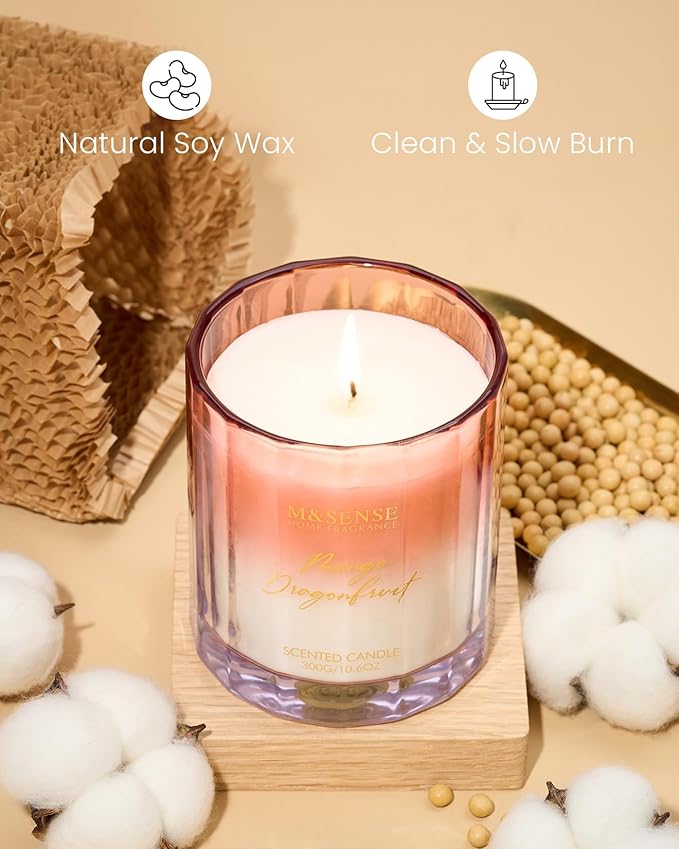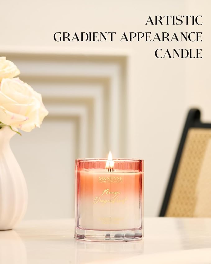 M&SENSE Mango Dragonfruit Scented Candle - 10.6oz Natural Soy Wax 60-Hour Long Lasting Burn Time Non Toxic Fruity Scented Candle for Home Decor, Vacation & Gifts for Friends