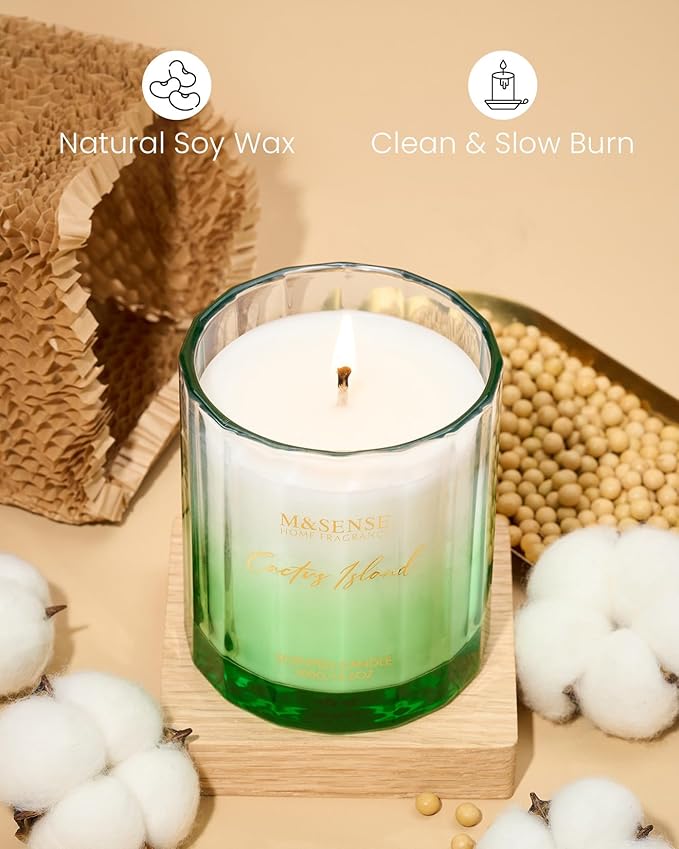 M&SENSE Spring Bergamot Cactus Scented Candle, 10.6oz Natural Soy Wax Non Toxic 60-Hour Slow Burning Highly Scented Candle for Home Decor & Housewarming Gifts
