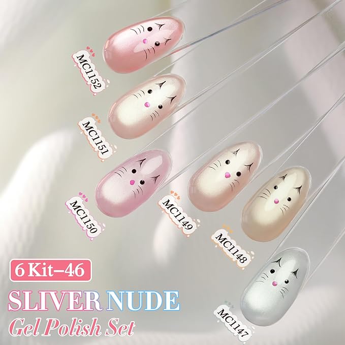 - Cat Eye Gel Nail Polish Set: Double Rhythm cat eye gel nail polish kit includes 6colors 7.5ml / 0.25 fl.oz gel nail polish. This cat eye gel nail polish set includes.Each kit comes with one magnetic tool for you to create a different cat eye style for your nails.