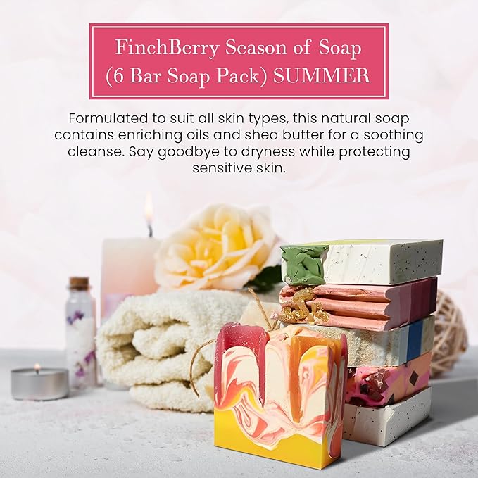 FinchBerry Season of Soap Gift Set - Handmade Seasonal Soaps - Cleanse & Moisturize with Olive, Shea Butter & Coconut Oil - Ideal for All Skin Types & SUMMER Gifting, Pack of 6 (4.5 oz Each)