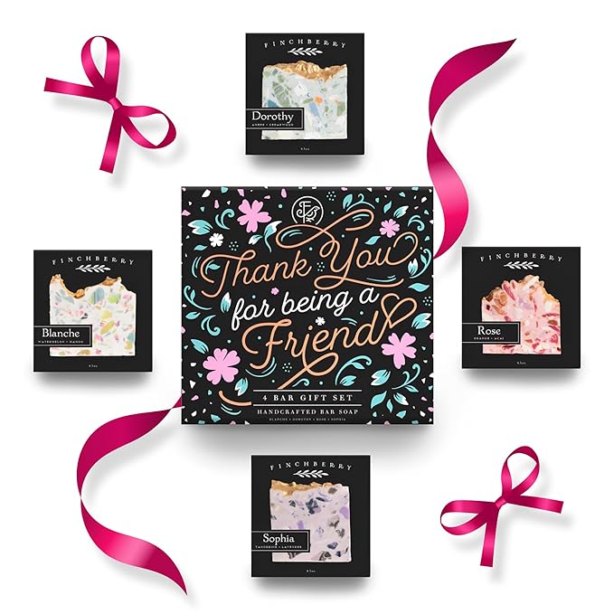 FinchBerry Thank You for Being a Friend Gift Set – Best Friends & Friendship Gifts for Women & Men – Includes 4 Handmade Natural Bar Soaps (4.5 oz Each)