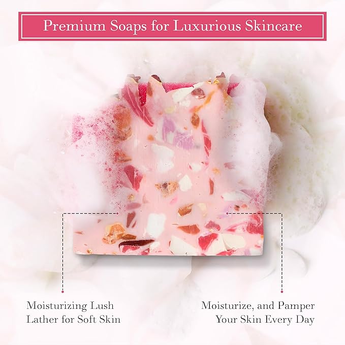 - 𝐆𝐞𝐧𝐭𝐥𝐞 𝐂𝐚𝐫𝐞 𝐰𝐢𝐭𝐡 𝐍𝐚𝐭𝐮𝐫𝐚𝐥 𝐈𝐧𝐠𝐫𝐞𝐝𝐢𝐞𝐧𝐭𝐬: Each organic soap is thoughtfully made with high-quality, natural ingredients to provide a gentle yet effective cleansing experience. Pamper your skin with nourishing formulas that feel soft, refreshed, and rejuvenated after every use.