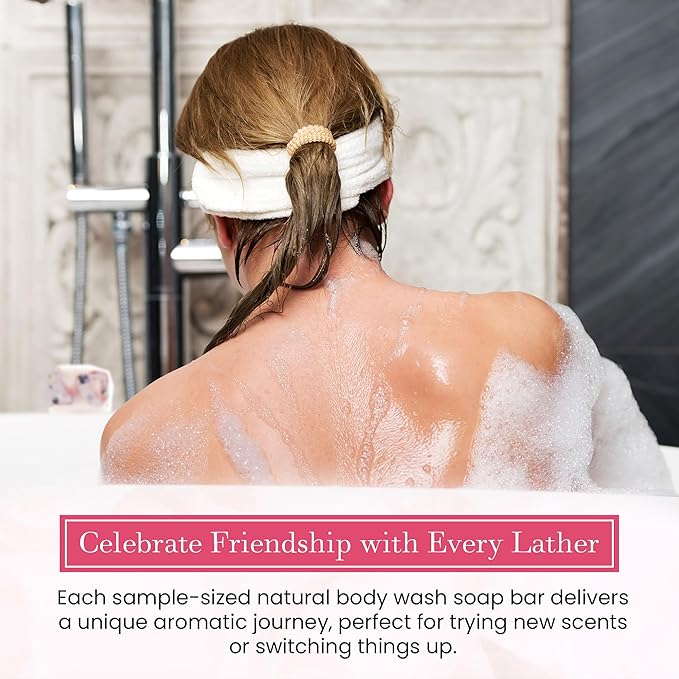 - 𝐋𝐮𝐱𝐮𝐫𝐲 𝐌𝐞𝐞𝐭𝐬 𝐍𝐨𝐬𝐭𝐚𝐥𝐠𝐢𝐚 𝐢𝐧 𝐄𝐯𝐞𝐫𝐲 𝐁𝐚𝐫: Experience the perfect blend of luxury and nostalgia with each uniquely scented soap in this body soap set. Carefully crafted to transform your bathing ritual, these aromatic bath soap bars offer an indulgent escape while celebrating the timeless charm of a show that touched generations.
