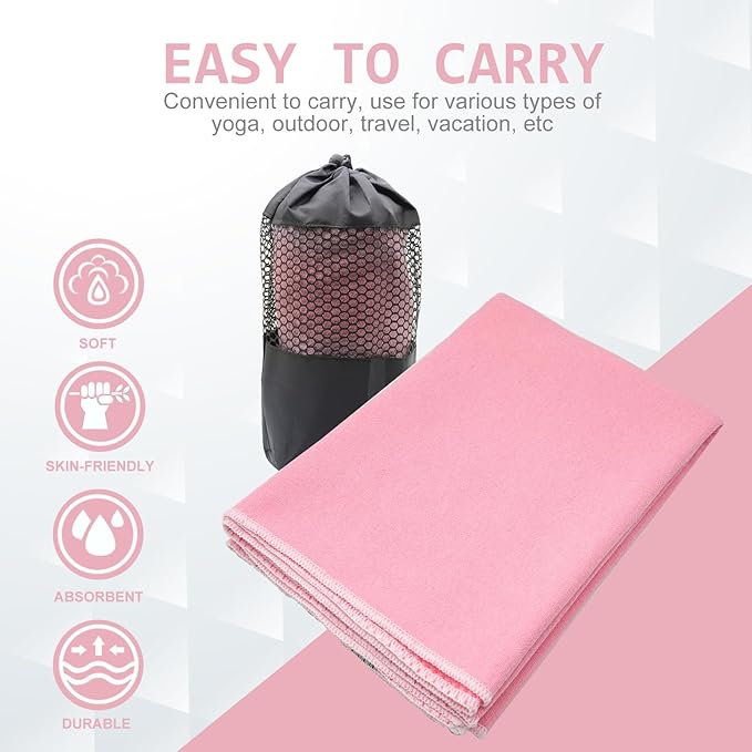 - PORTABLE & LIGHTWEIGHT: 72" (183cm) long X 24" (63cm) wide, suitable for most yoga mats. You can pack your yoga towel for easy carrying and storage. It can also be used as beach towel, camping towel, beach body wrap, rest towel, blanket, table cloth and bath towel