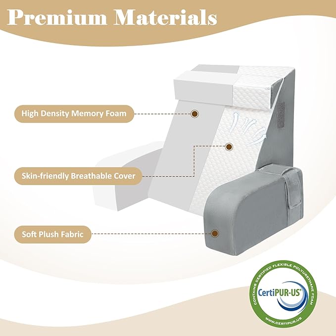 - Ergonomic Back Support Pillow: Our reading pillow for sitting in bed features a 60-degree angled backrest design, provides full enduring support for your head, neck, shoulder, back and lumbar during long reading or relaxation sessions, ensuring comfort without sagging, accumulating, or losing its shape.
