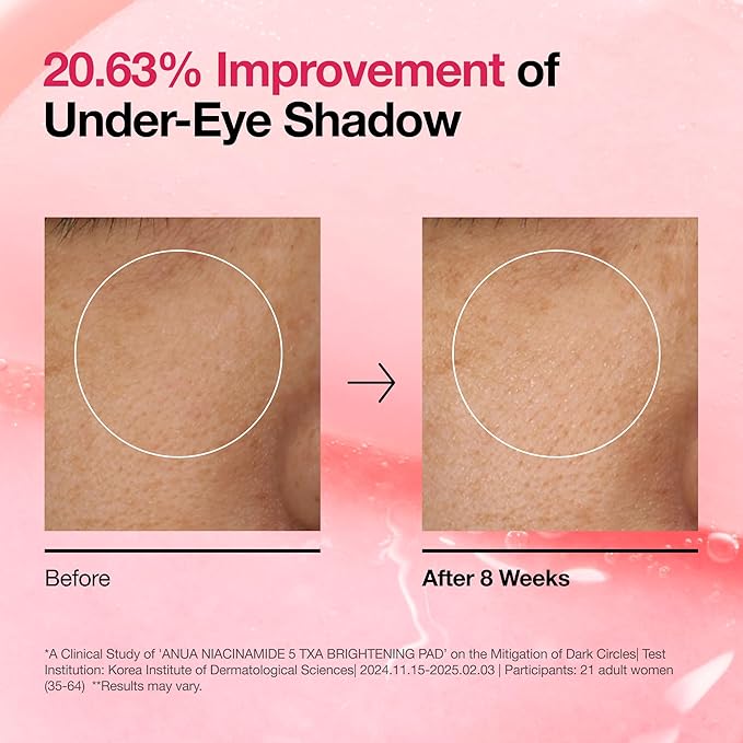- [Gentle Daily Radiance Care] With Niacinamide and TXA, these pads help refresh and refine the look of tired or uneven skin—ideal for areas like under-eyes, cheeks, and around the mouth.